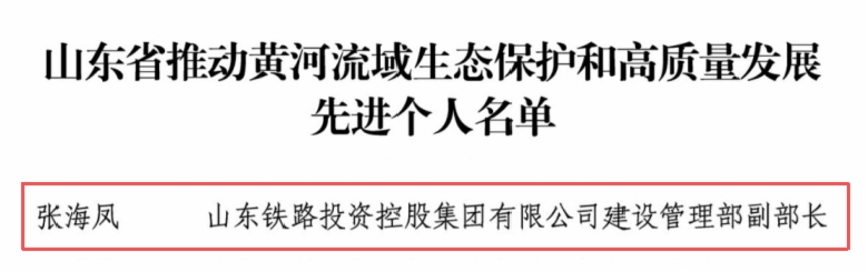 近日,省發展改革委開展了山東省推動黃河流域生態保護和高質量發展優秀范例和先進典型評選工作,山東鐵投集團建設管理部副部長張海鳳榮獲先進個人。