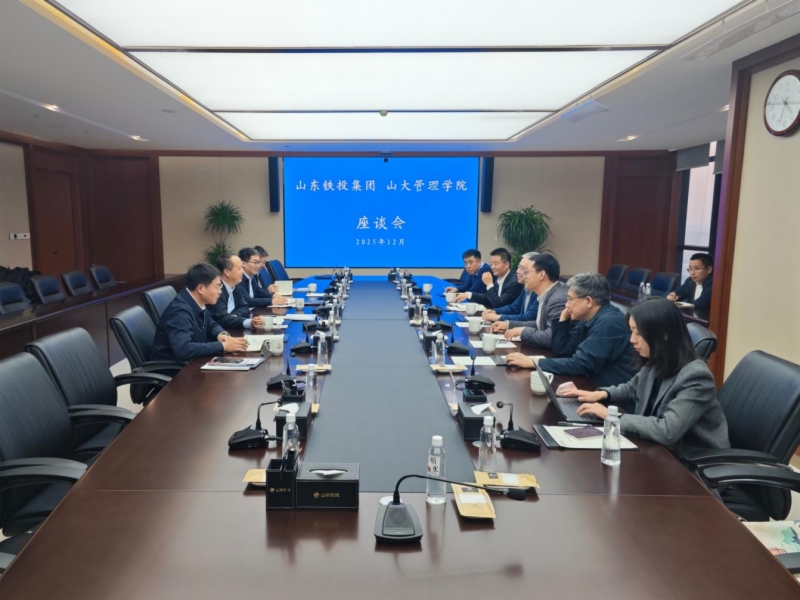 丁榮貴感謝山東鐵投集團的熱情接待,并介紹了山東大學以及管理學院的基本情況。他表示,山東大學管理學院在文化、體制、校友資源等方面具有特色優勢,希望基于學院自身學科特點,與山東鐵投集團在企業系統賦能、智力人才支撐、平臺資源匯聚等方面加強交流合作,促進產學研深度融合,為雙方在人才培養、科研創新、項目合作等領域的協同發展奠定更為堅實的基礎。